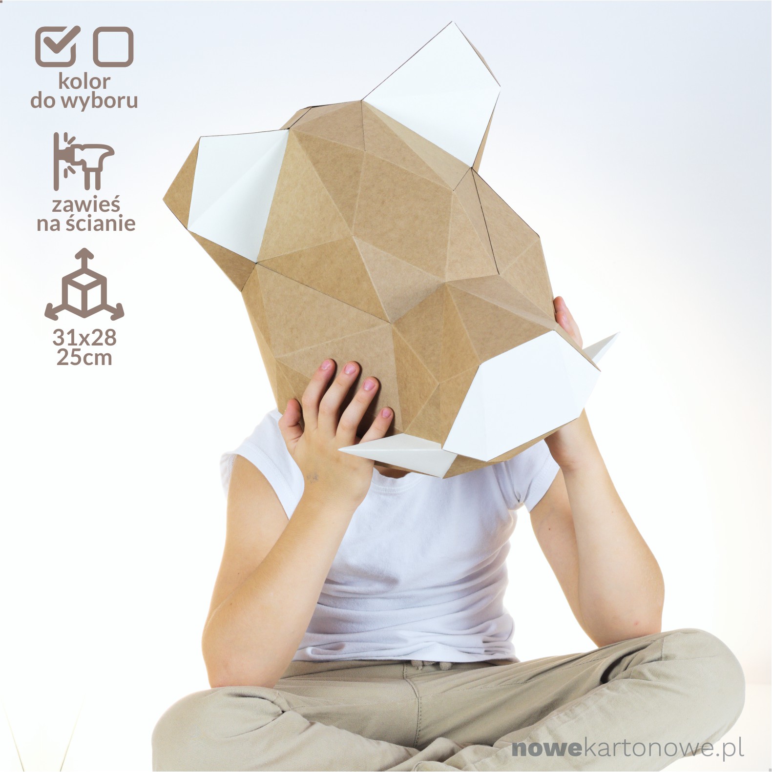 „Dzik jest dziki, dzik jest zły” – lecz nie nasz;). Nasz jest udomowiony i spokojny a do tego prosty do złożenia. Ma wymiary ok. 31cm x 28cm x 25cm. i wykonany jest z kartonu o gramaturze 270g/m2. Model posiada specjalne nacięcie , dzięki któremu można zawiesić go na ścianie.