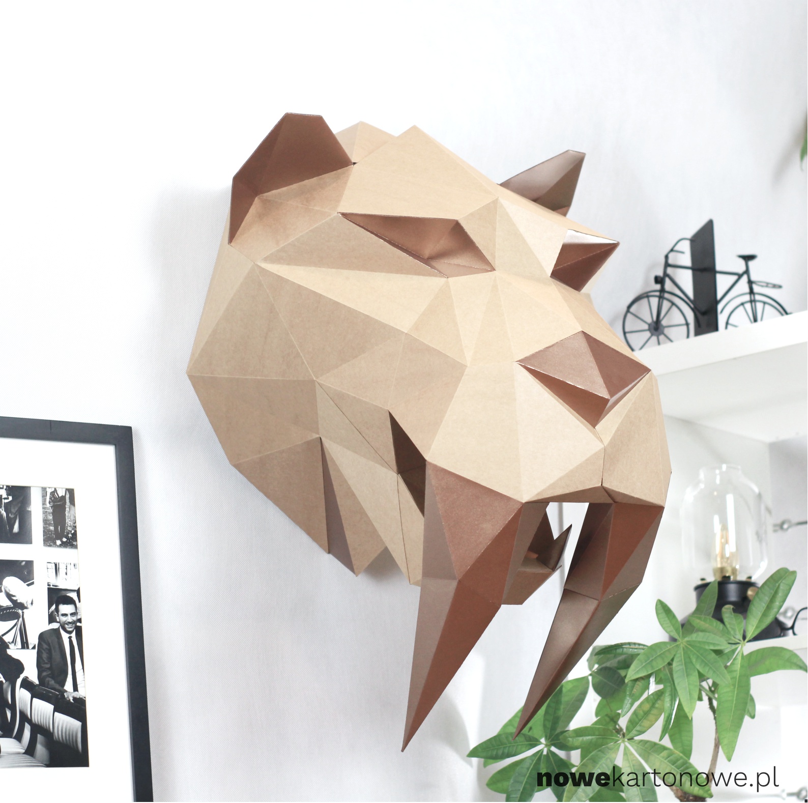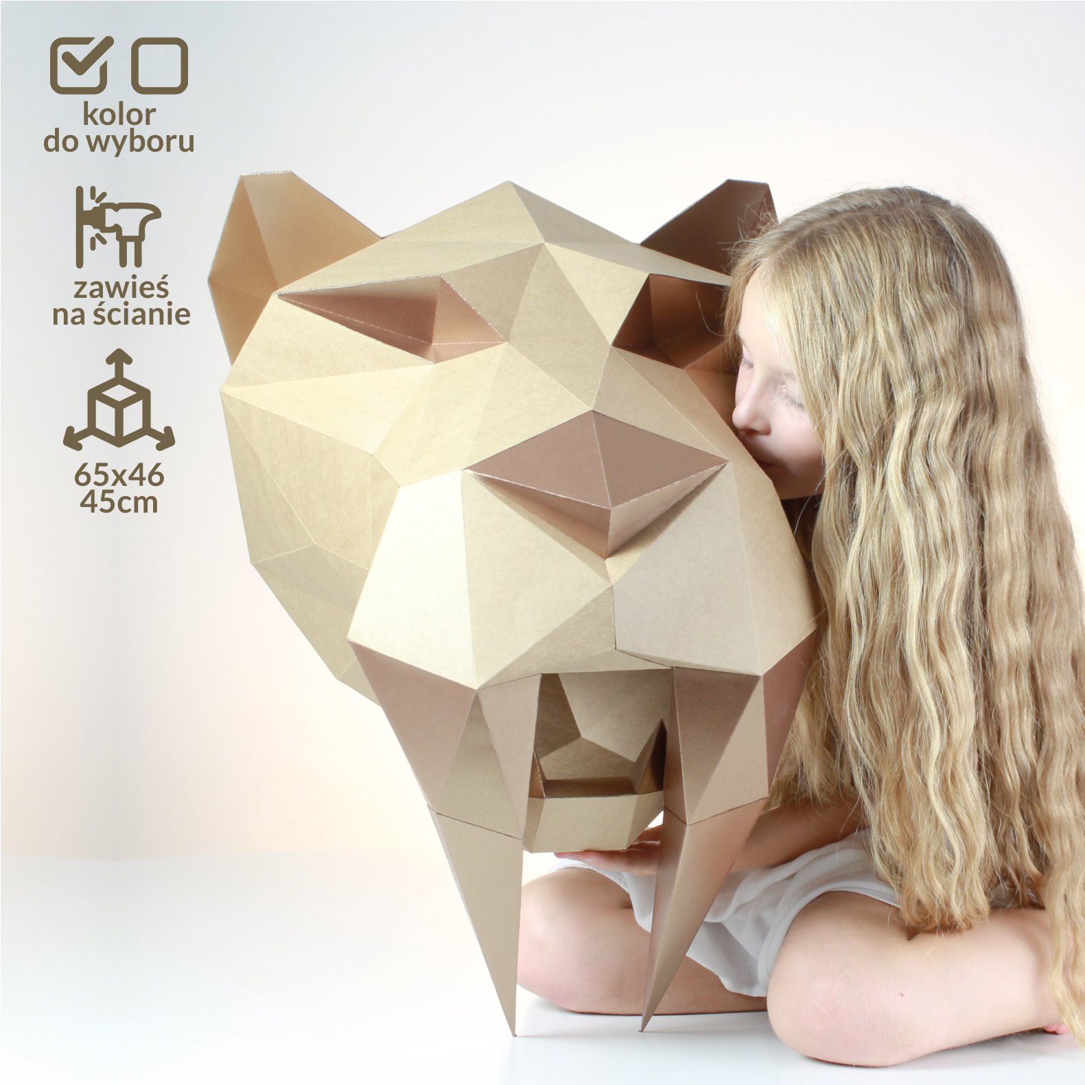 Staramy się być EKO i dlatego sięgnęliśmy po piękne, ekologiczne kartony z recyklingu. Żyjący w erze kenozoicznej Tygrys Szablozębny zwany także Smilodonem, ucieszy wszystkich fanów prehistrorii.  Może również posłużyć jako dekoracja do ciepłego zrównoważonego wnętrza.  Po złożeniu ma wymiary ok. 65cm x 46cm x 45cm. Wykonany jest z eko kartonu o gramaturze 300g/m2 oraz z brązowych ,metalizowanych dodatków.
