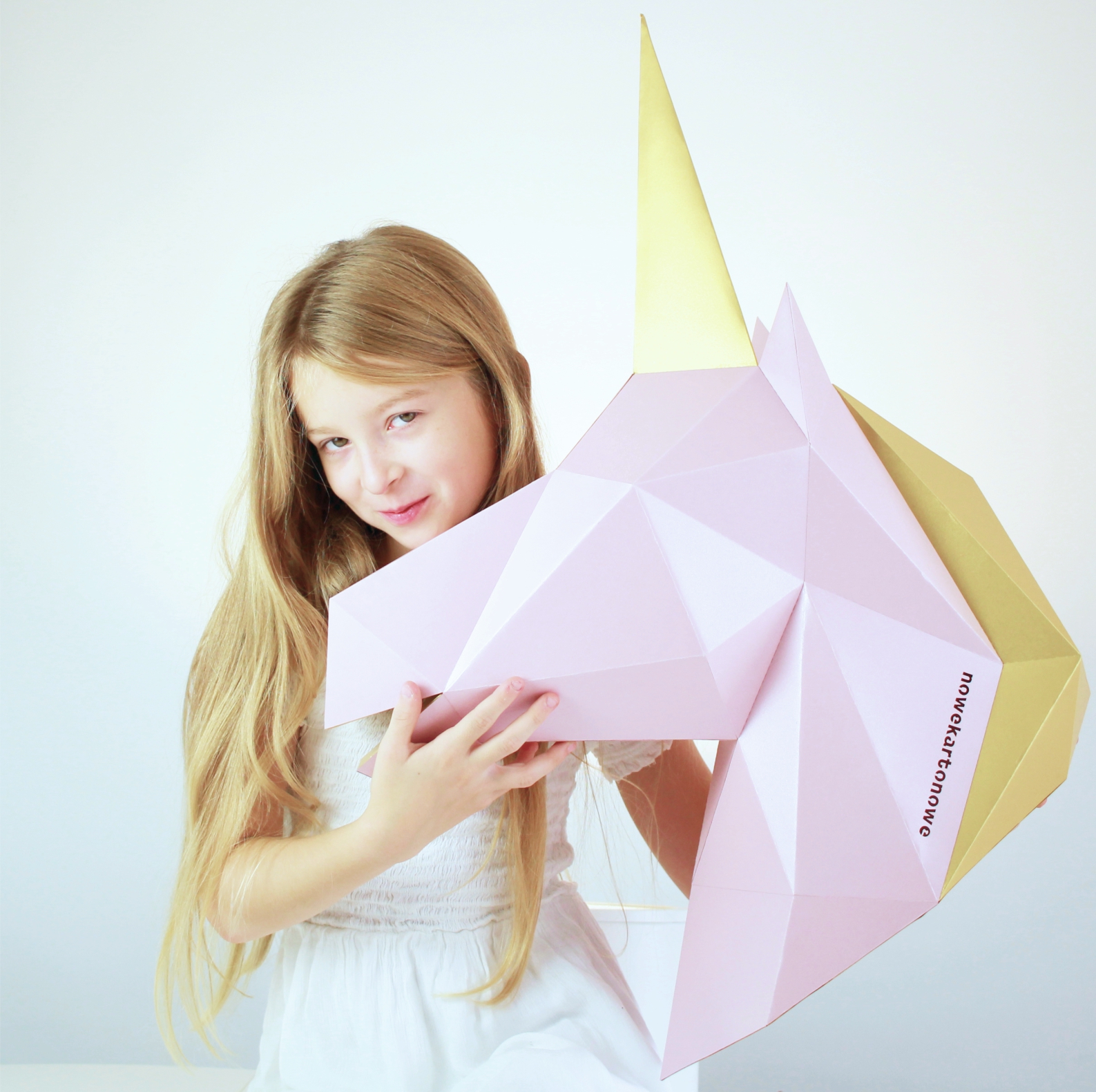 Ogromny, ponad półmetrowy jednorożec DELUX XXL to nie lada gratka. Czy wiedzieliście, że mityczne poskręcane rogi jednorożców, tak naprawdę były siekaczami narwala!!! Extra co ? Nasz jednorożec ma wymiary ok. 60cm x 50cm x 28cm i jest przystosowany do powieszenia na ścianie. Model wykonany jest z  wyjątkowego kartonu o dwustronnie metalizowanej powierzchni. Posiada certyfikat FSC, wykonany z celulozy ECF i barwiony jest w masie.
