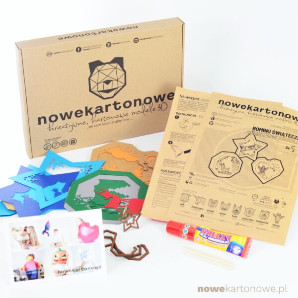 Nowekartonowe to trójwymiarowe, kartonowe modele dekoracyjne do samodzielnego złożenia. Składać je mogą zarówno dzieci jak i dorośli, a najlepiej – razem 😉 (od 4 do 104 lat)